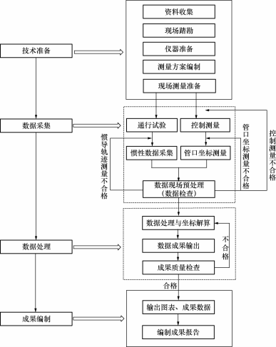 6.1.1 数据采集包括: 管道出入口三维坐标测量 、管道三维轨迹测量和数据现场预处理。
